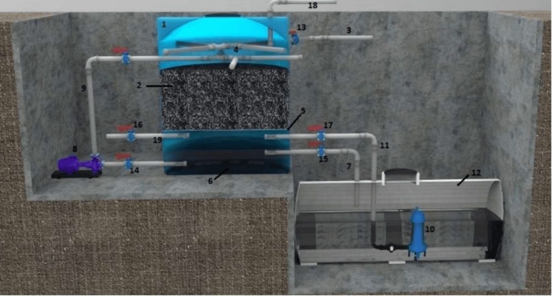 Filtro Percolador con Retrolavado y Recirculación